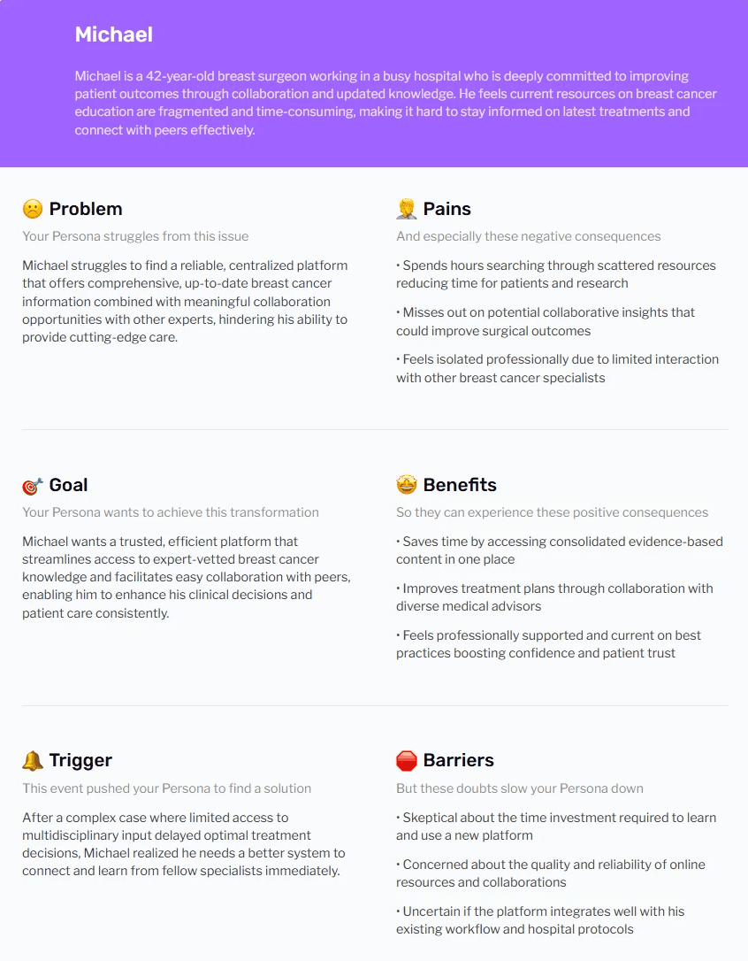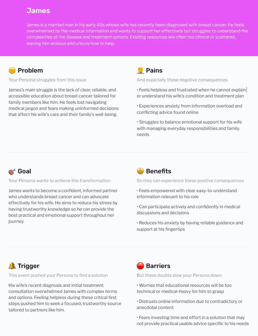 User Research Insights: Through user interviews with 12 breast cancer patients and caregivers, we discovered that 83% struggled to find specific doctor expertise within 3 clicks, and 67% felt overwhelmed by the amount of unorganized medical information.