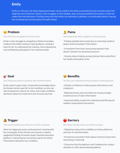 Content Discoverability Reorganized blog and educational content by user journey stage (newly diagnosed, in treatment, survivor) rather than content type, enabling faster access to relevant information during critical moments.